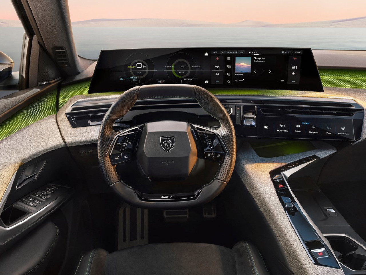 Un pannello a sbalzo sopra la plancia racchiude due schermi di 10” affiancati o, nelle versioni più ricche, un unico pannello di ben 21”. Sotto, alla destra del volante, ci sono la levetta della trasmissione (nessuna versione avrà il cambio manuale) e un ulteriore display che permette di impostare delle "scorciatoie" per le funzioni usate più spesso. La plancia della Peugeot 3008 è poi collegata al tunnel da un alto “ponte” che raccoglie altri comandi, come quello del freno di stazionamento. Tanti i vani, compreso uno refrigerato sotto il bracciolo centrale. Anche se sembrano a sfioramento, i tasti al volante sono fisici, come gli altri comandi; peccato per il “clima” (bizona e con bocchette posteriori) che si gestisce unicamente dallo schermo.