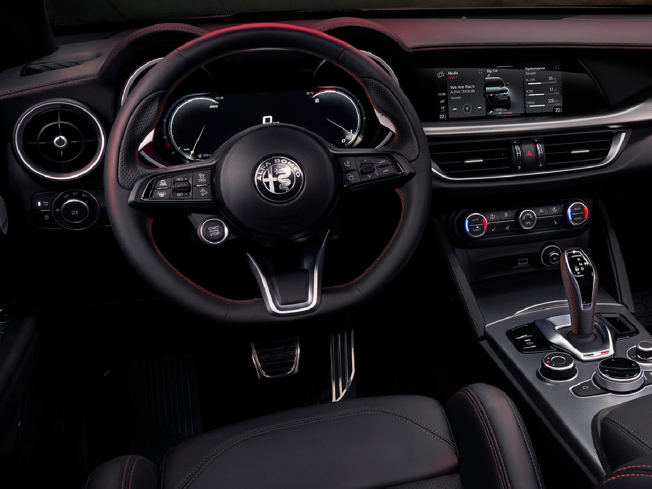 Tanta sportività non influisce sulla praticità dell'Alfa Romeo Stelvio: l'abitacolo è ampio, mentre il bagagliaio è capiente, facilmente accessibile (con il portellone elettrico) e pratico (il divano è in tre parti reclinabili). Le finiture sono piuttosto curate e la dotazione è buona per il prezzo. Con l'aggiornamento di fine 2019 si sono aggiunti un impianto multimediale al passo con i tempi, la ricarica wireless per i telefonini predisposti e gli aiuti elettronici che, in determinate situazioni, permettono alla Stelvio di muoversi un modo semi-autonomo (il guidatore deve, comunque, tenere le mani sul volante). Alla fine del 2022, invece, sono arrivati i fari a matrice di led (prima erano bixeno) e il cruscotto digitale: elegante, facile da consultare ricco di informazioni.