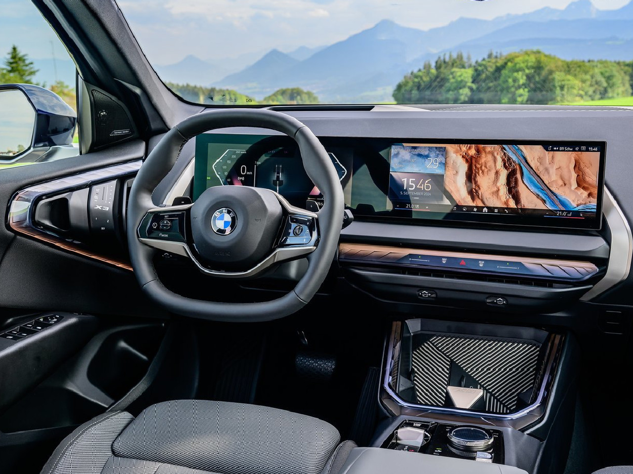 Gli interni della BMW X3 offrono un ambiente sportivo, contraddistinto da uno stile minimale, reso moderno dal lungo display curvo che comprende il cruscotto digitale e lo schermo del sistema di infotainment e dalla quasi totale assenza di tasti fisici per l’azionamento dei comandi. Originale anche la nuova corta leva del cambio automatico. Grande il bagagliaio, che ha una capacità massima di 1700 litri.