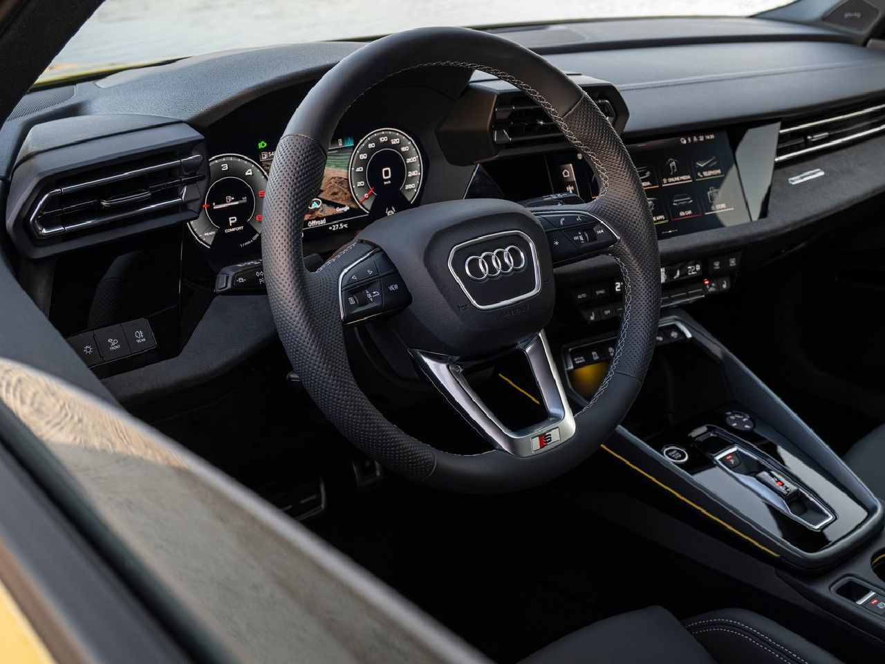 All’interno, l’Audi A3 allstreet è identica alla sorella Sportback, compreso il bagagliaio di 380 litri con il divano in uso, con il fondo posizionabile su due altezze. Il cruscotto digitale di 12,3” permette molte possibilità di personalizzazione, mentre lo schermo centrale di 10,1” consente di accedere alle funzioni di bordo e di scaricare numerose applicazioni. Quattro passeggeri viaggiano comodi, ma l’eventuale quinto deve fare i conti con un tunnel centrale di dimensioni importanti tra i piedi.